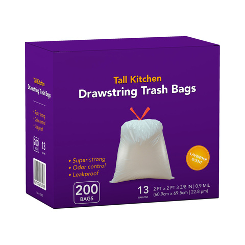 ถุงขยะในครัวทรงสูง13แกลลอนมีกลิ่นหอมลาเวนเดอร์มี200ถุงรูดกันรั่วแข็งแรงเป็นพิเศษแยกออกจากกันก่อนบรรจุภัณฑ์ที่แข็งแรง