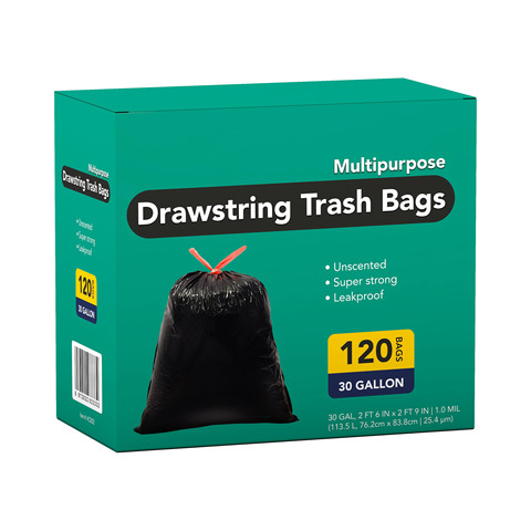 Dây Kéo Túi rác 30 gallon không mùi 120 đếm trước khi tách ra, vật liệu thân thiện với môi trường, Nhiệm Vụ nặng nề, leakproof, mạnh mẽ, màu đen